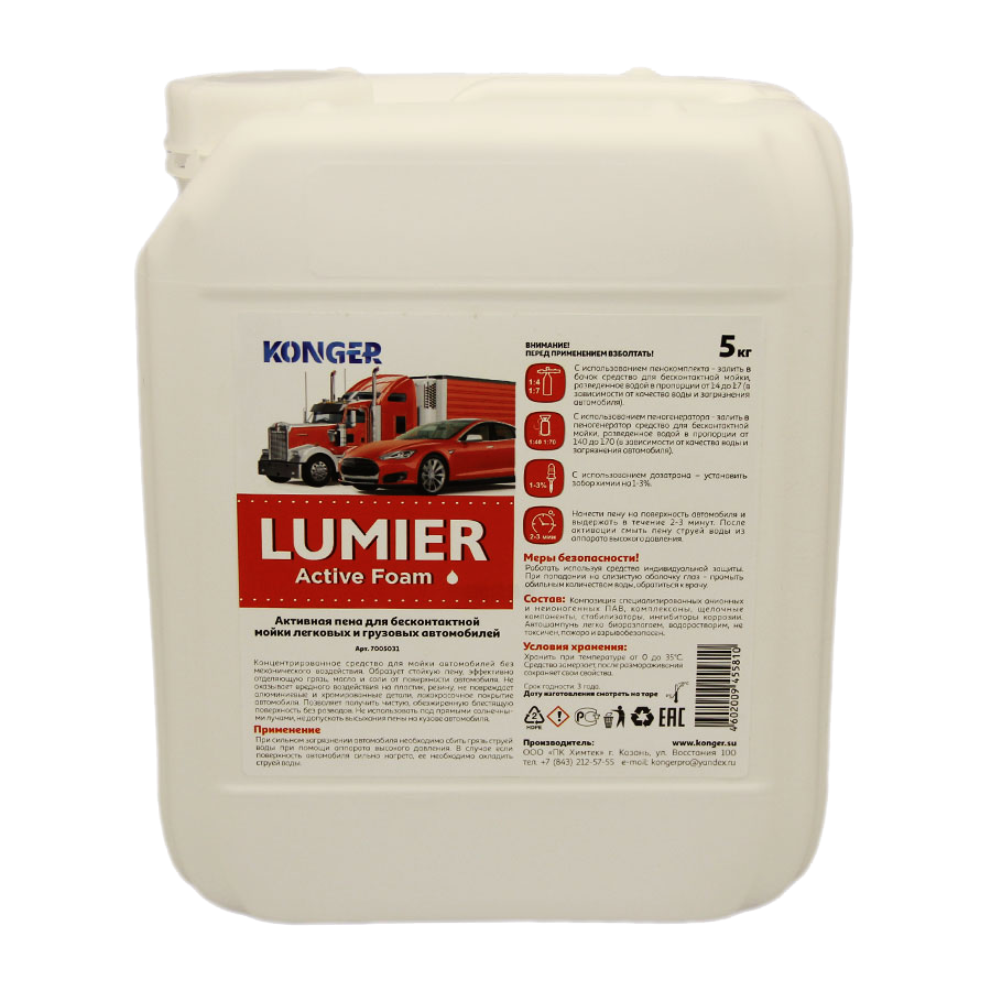 Konger LUMIER  - Концентрированное средство для мойки автомобилей без механического воздействия. Образует стойкую пену, эффективно отделяющую грязь, масла и соли от поверхности автомобиля.