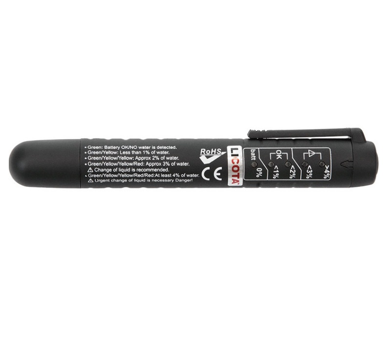 Процентное содержание воды показывается диодными индикаторами (5 светодиодов): 0%, <1%, 2%, 3%, >4%.