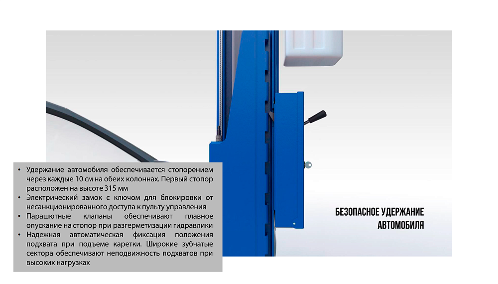 • удлиненная каретка гарантирует равномерное распределение нагрузки по всей высоте колонны