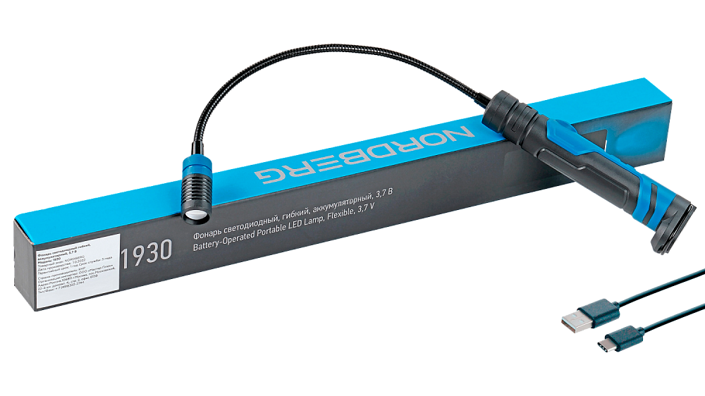 Фонарь NORDBERG светодиодный гибкий, со встроенным аккумулятором на 3,7 В