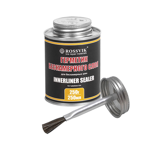 Герметик бескамерного слоя Rossvik предназначен для восстановления герметичности внутреннего слоя шины при ремонте пластырями.