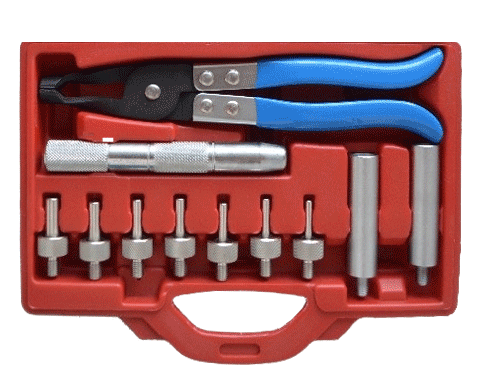 Данный набор представляет собой комплект инструмента для снятия и установки маслосъемных колпачков и направляющих.
