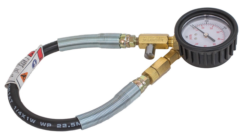 Шланг манометра оборудован специальным клапаном, что позволяет не учитывать паразитный объем воздуха в шланге, обеспечивая максимальную точность измерений