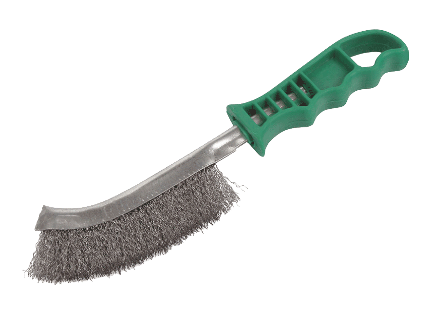 Металлическая однорядная щетка GARWIN 736032-1 с щетиной из стальной волнистой проволоки уставленной в металлическое основание.