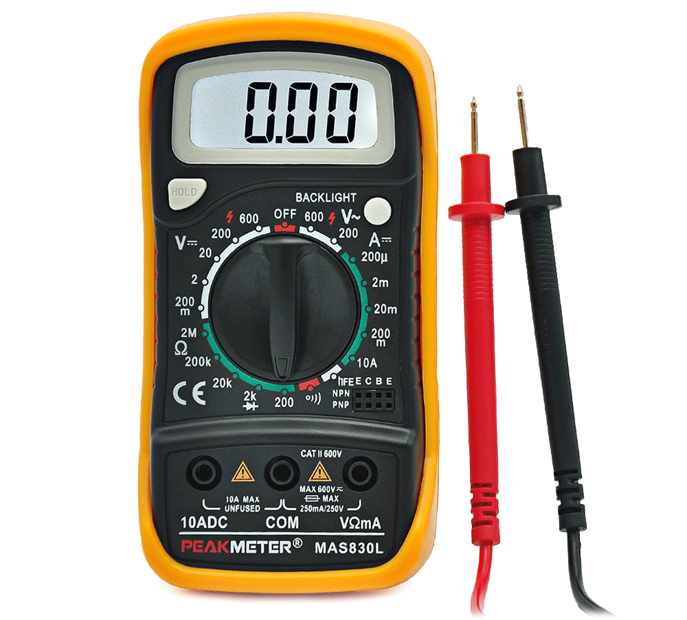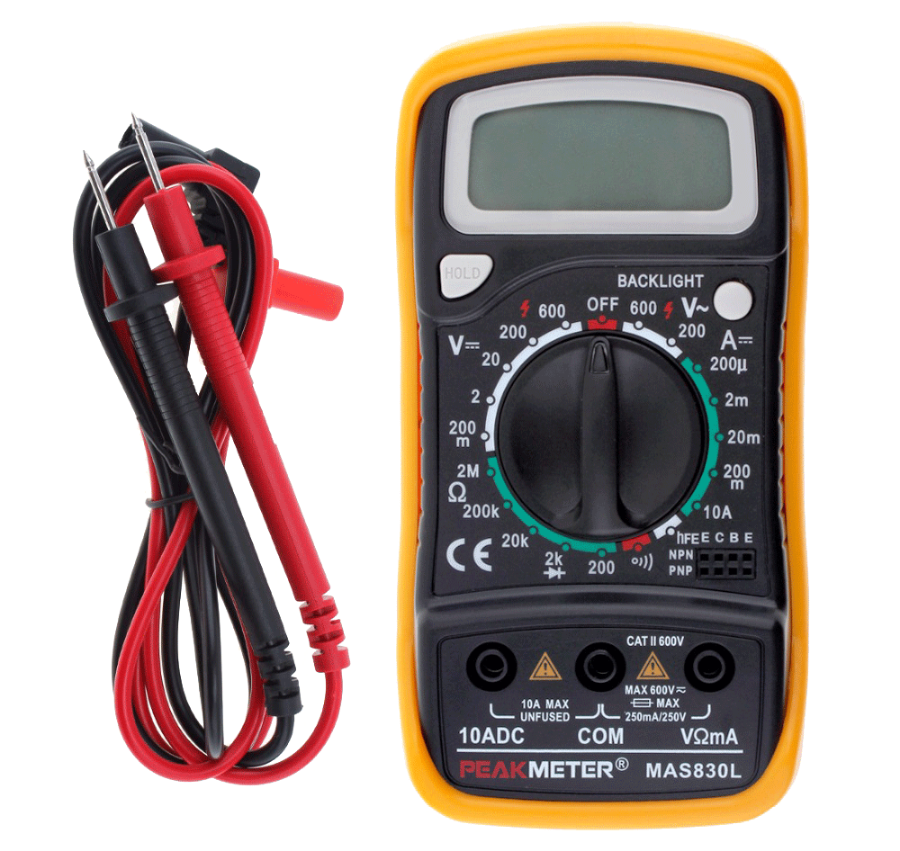 Цифровой мультиметр MAS830L предназначен для измерения силы тока, постоянного и переменного напряжения, сопротивления, определения направления тока диодов и параметров транзисторов.