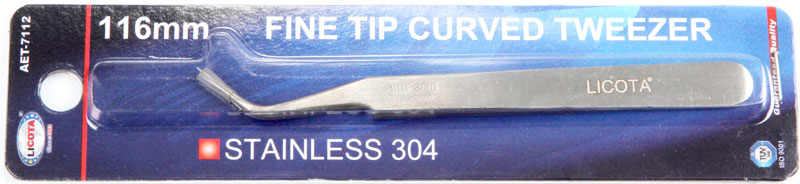 Пинцет изогнутый, c тонким жалом 116 мм