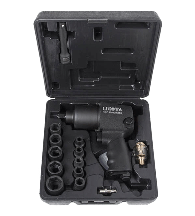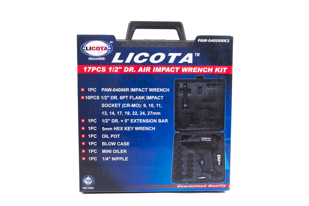 Набор Licota PAW-04006RK2 включает в себя «заслуженный» гайковерт пневматический ударныймодели PAW-04006R и дополнительные аксессуары к нему под посадочный квадрат 1/2". В него входят: