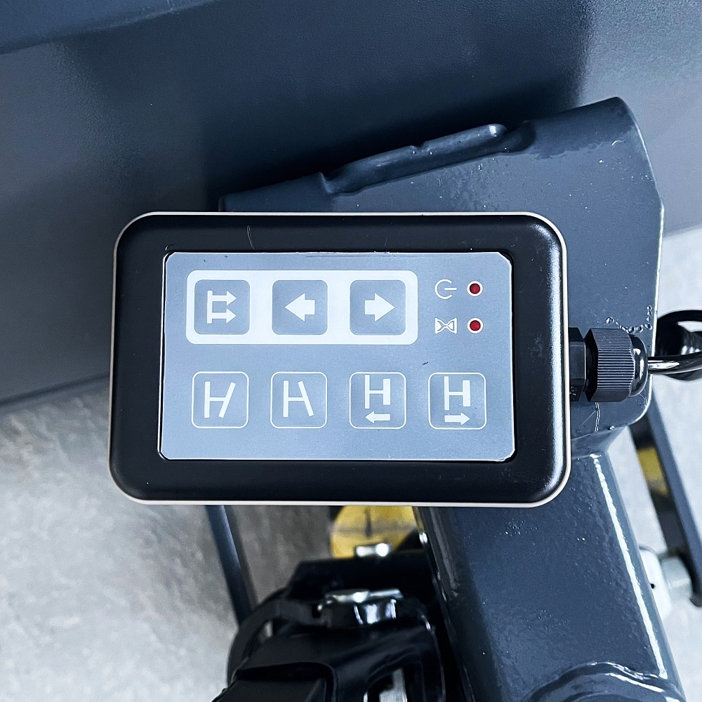 Опускание и подъем нижнего стола осуществляются с помощью пульта дистанционного управления, который приводится в действие гидроцилиндром, управляемым блоком управления.