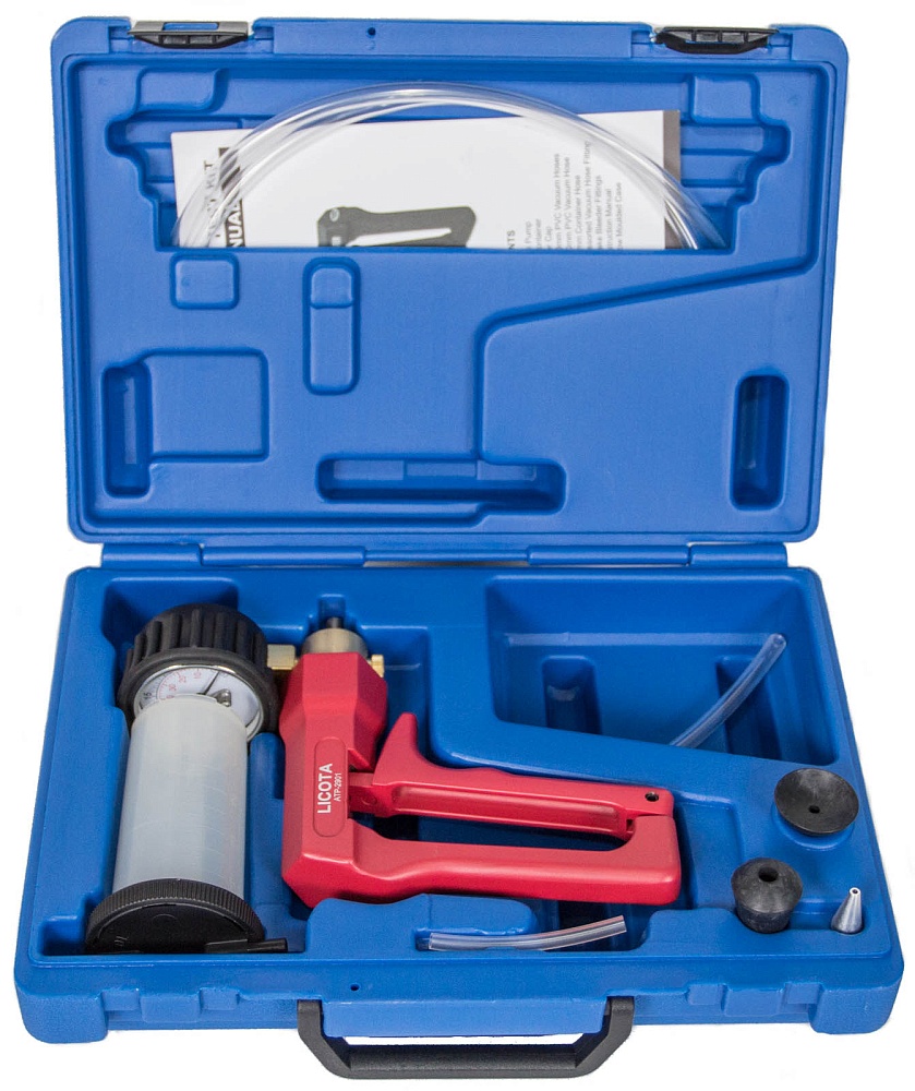 В наборе имеются резервуары и переходники для прокачки тормозов.