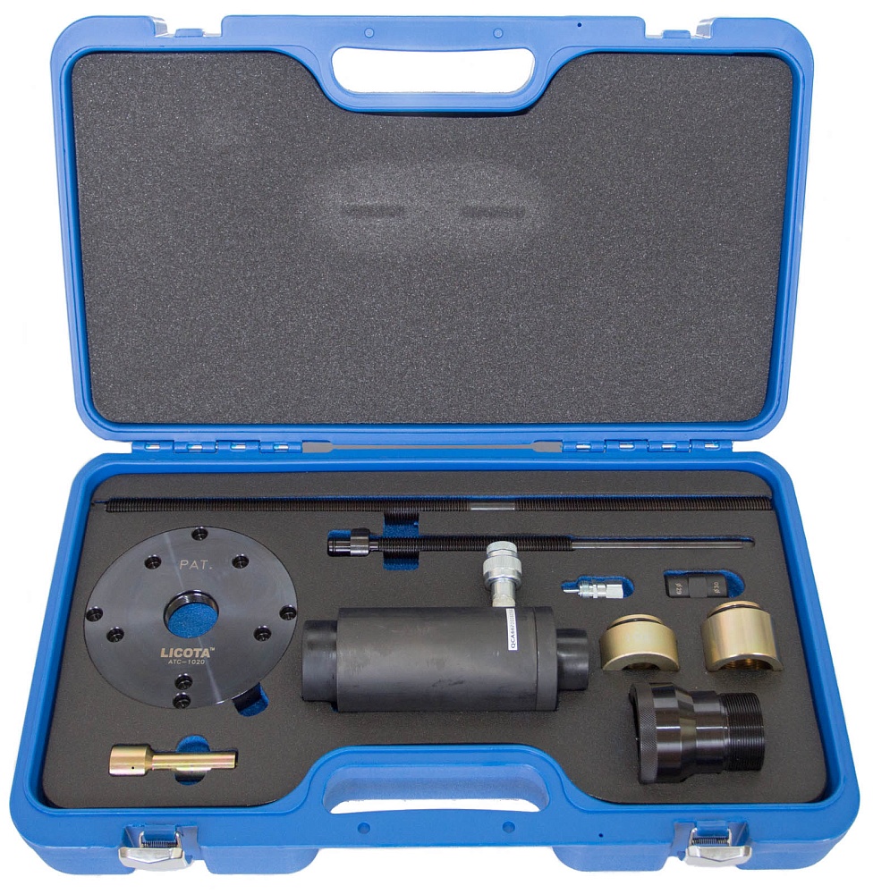 В комплект набора входят два силовых винта для выпрессовки различной длины: 350 мм и 570 мм, адаптер для ступицы и разнообразные оправки для запрессовки / выпрессовки .