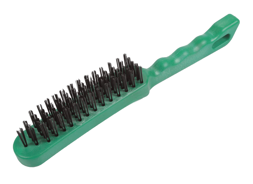 Щетка металлическая имеет стальную проволочную щетину в пластиковом корпусе.