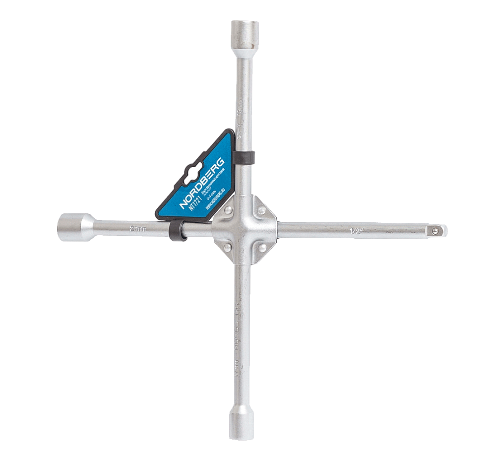 Ключ баллонный крестовой. Размер 17x19x21 мм. Привод под головки 1/2" Cr-V сталь