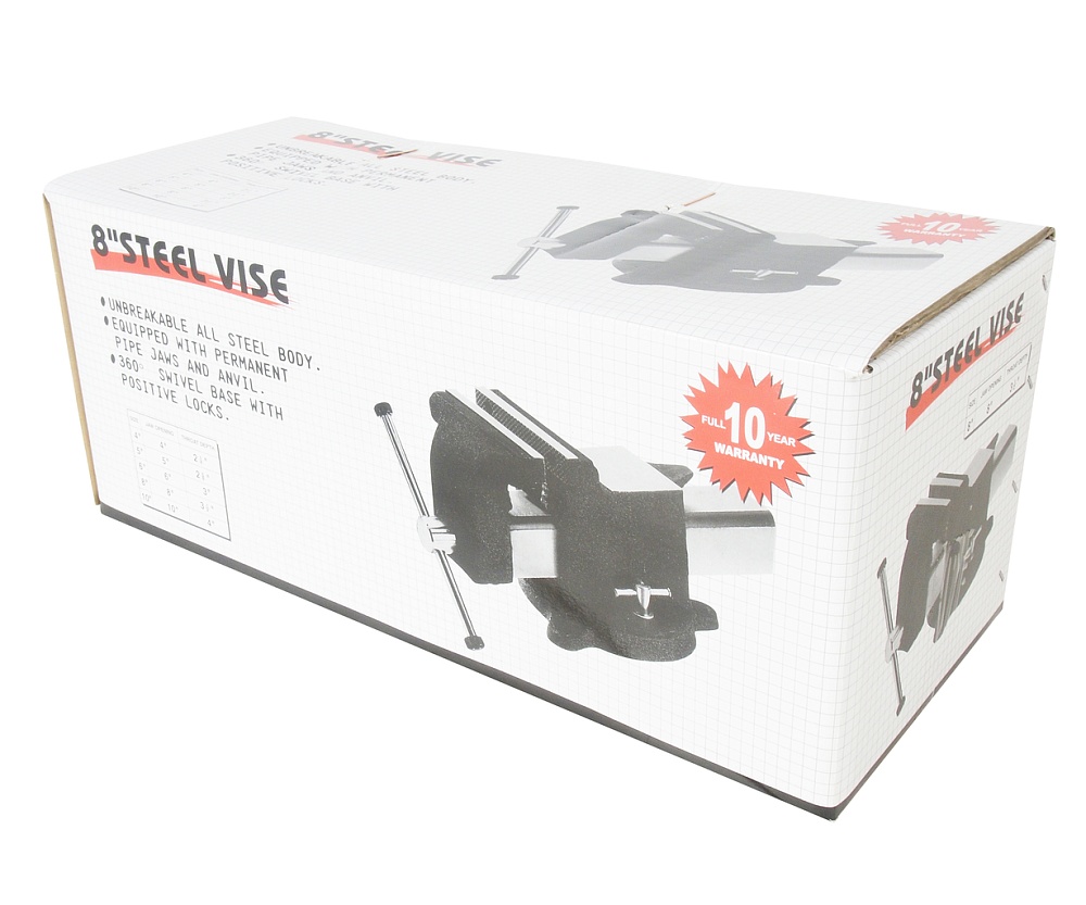 Специальная конструкция с поворотным основанием позволяет регулировать и фиксировать тиски в нужном направлении.