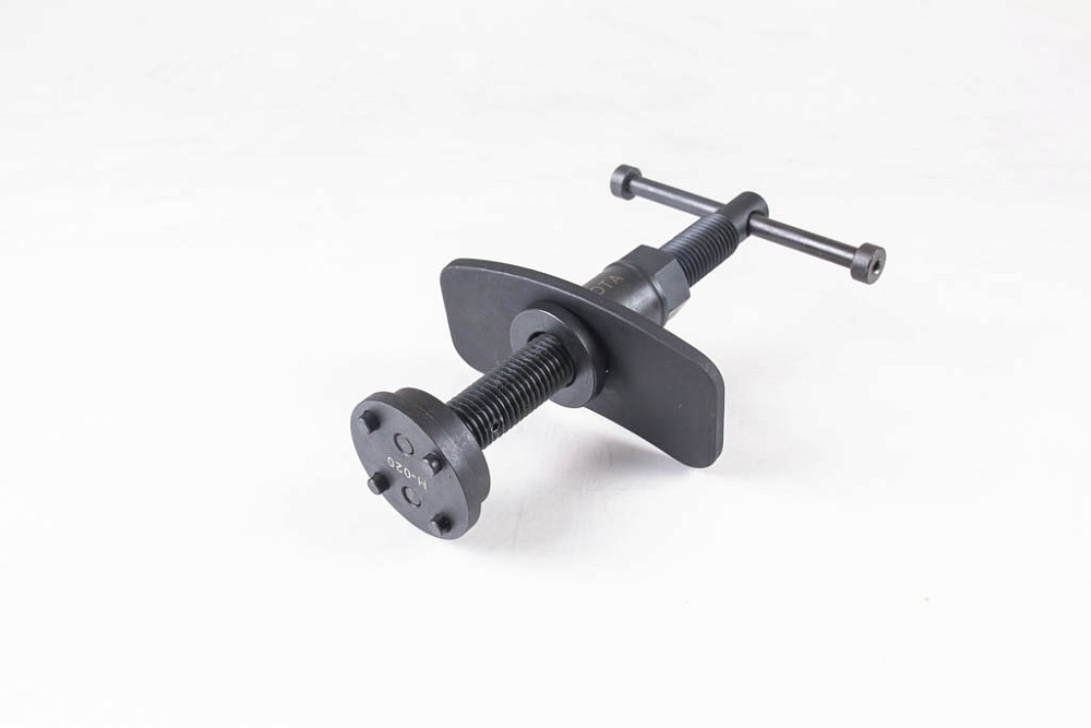 Вставляется в суппорт и выжимает тормозной цилиндр, что значительно упрощает установку тормозных колодок. Инструмент спроектирован таким образом, чтобы подходить большинству современных автомобилей.