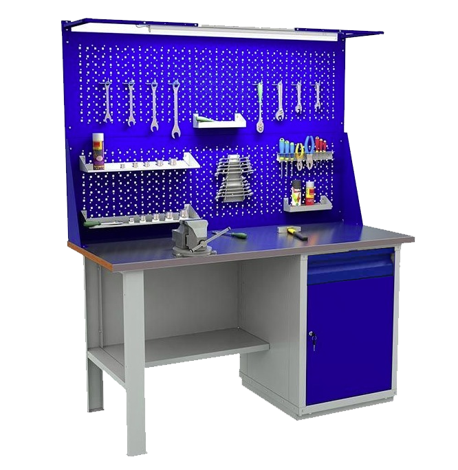 Верстак, одна тумба с выдвижным ящиком, перфорация, подсветка