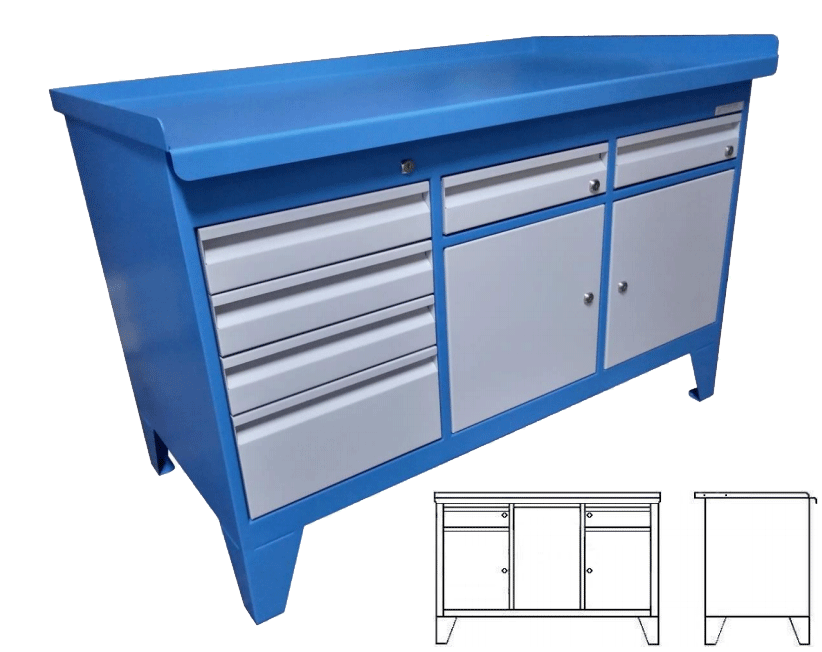 Двери и ящики верстака оборудованы внутренним замком .