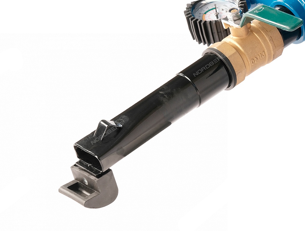 3. Приставьте сопло бустера к щели между бортом шины и ободом диска, и резко откройте шаровой вентиль .