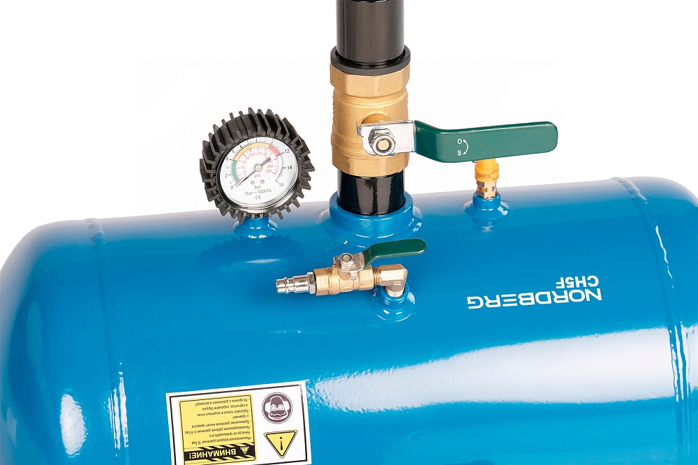 Ресивер оснащен предохранительным клапаном, манометром и быстросъемным переходником.