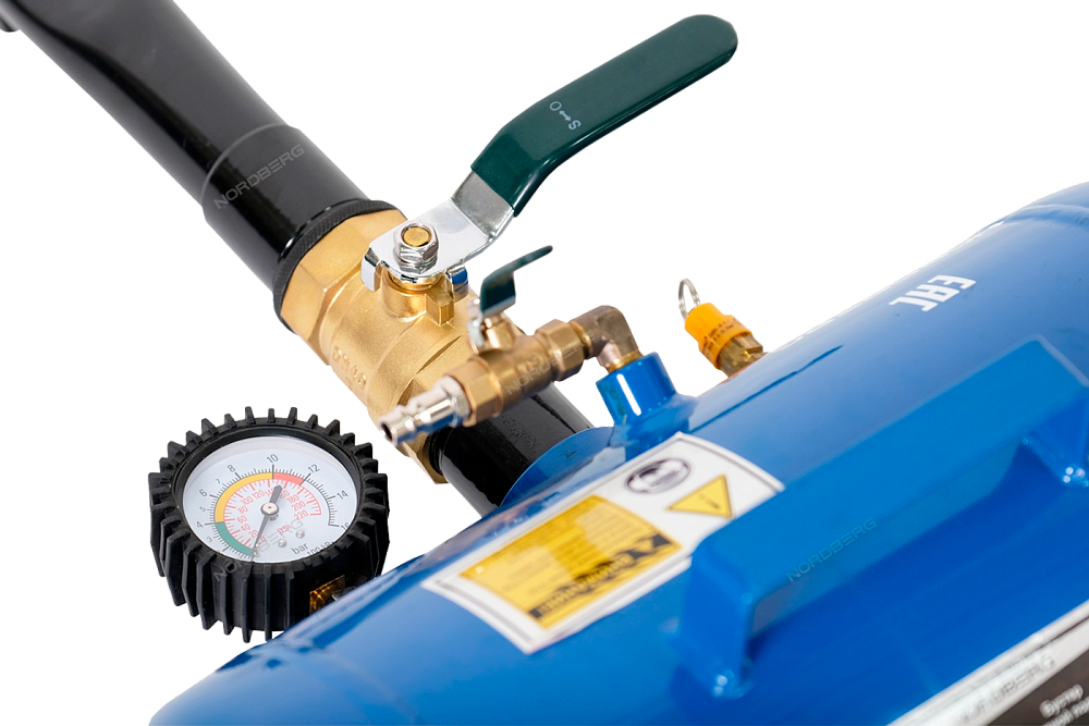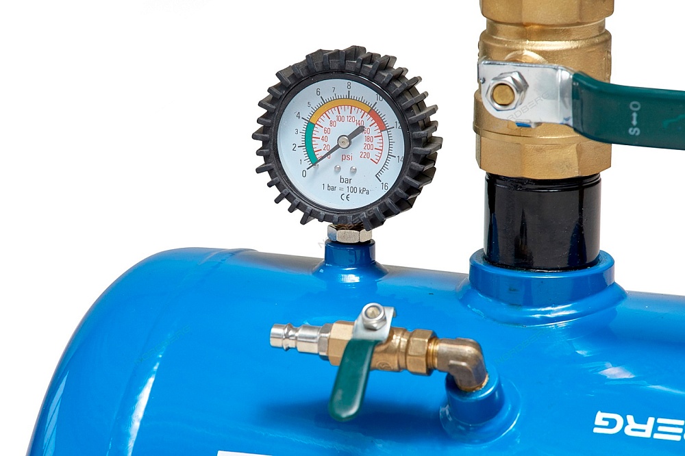 Ресивер оснащен предохранительным клапаном, манометром и быстросъемным переходником.
