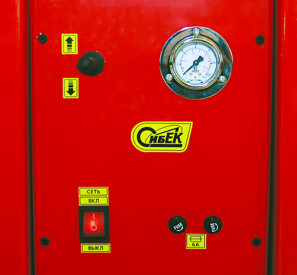 Перемещение нагревательных элементов осуществляется при помощи штока, его положение фиксируется стопорным штырём, а перемещение – посредством пневмоцилиндра, создающего макс . давление на ремонтируемую зону более 900 кГ. Оба элемента снабжены электро и пневмо разъемами. Система предварительной подводки нагревательных элементов обеспечивают полную безопасность работающего на вулканизаторе оператора.