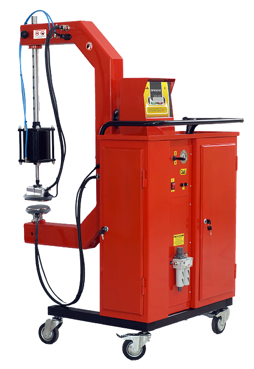 Конструкция корпусной скобы вулканизатора «Эребус» допускает работату в вертикальном и горизонтальном положении, а пневмолифт обеспечивают четкую установку прижимов на ремонтируемый участок покрышки без излишних физических усилий.